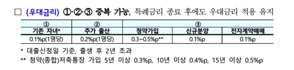 아이 1 명당 금리 0.2% 인하 및 특례기간 5년 연장