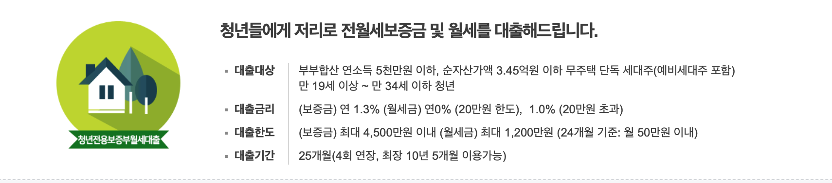 보증금 대출은 최대 4,500만원, 월세금 대출은 최대 1,200만원(24개월 기준 월 최대 50만원 이내)