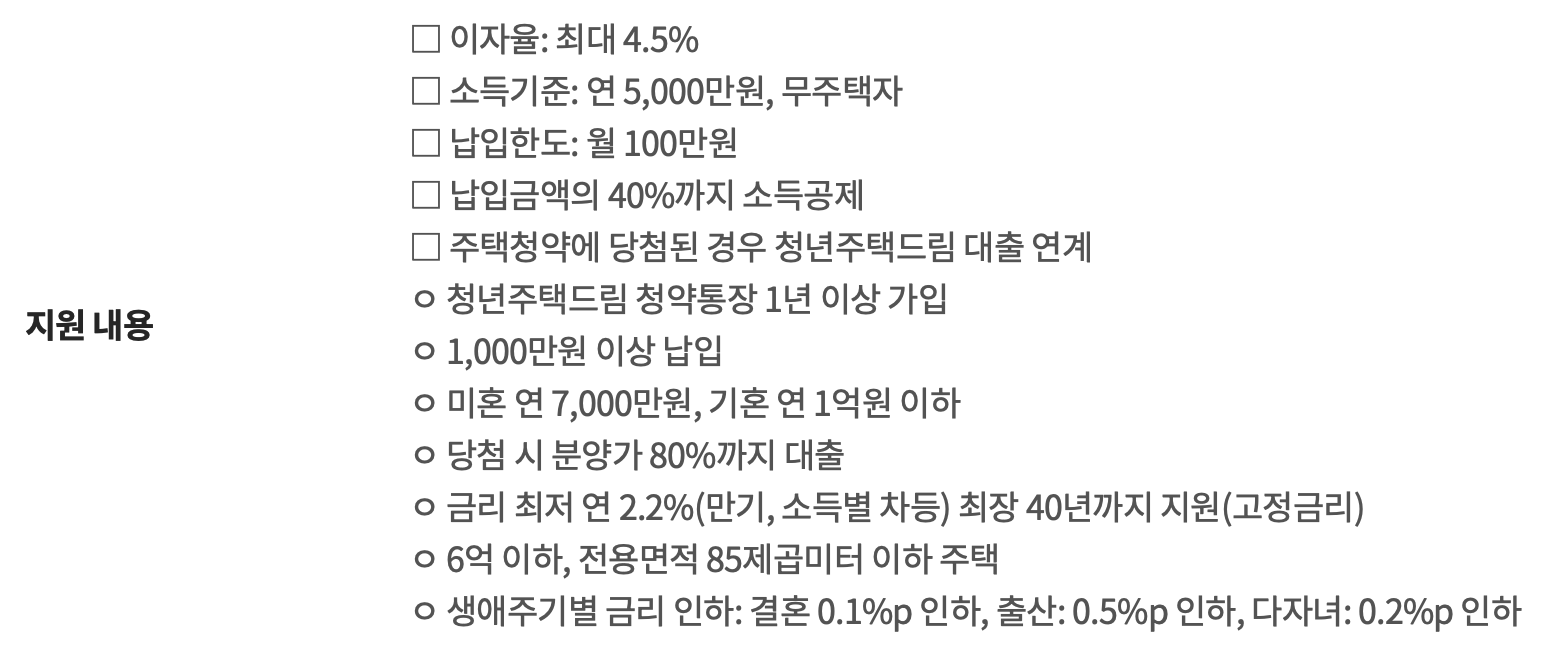 청약통장과 대출을 연계하여 장기․저리의 대출을 지원할 뿐만 아니라, 결혼․출산․다자녀 등